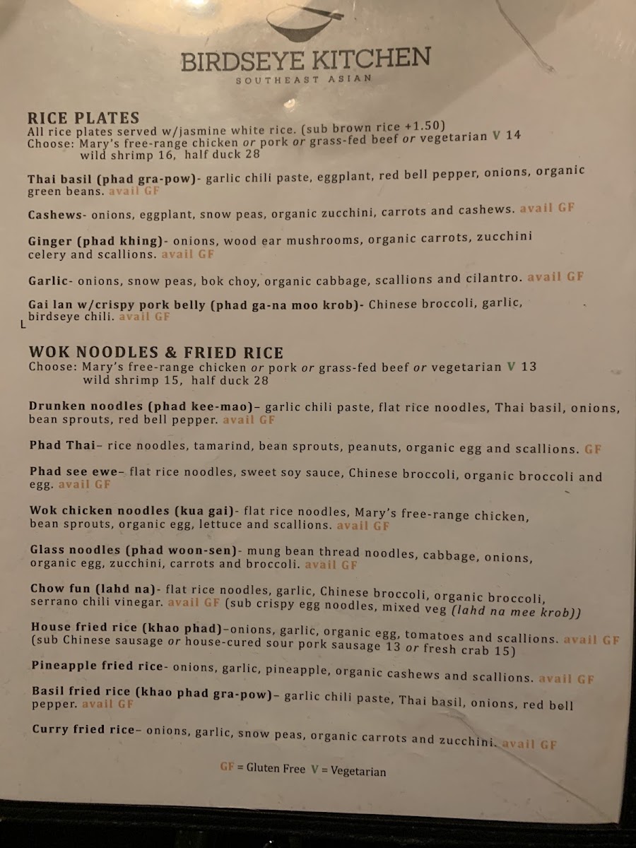 Guests appreciate the cozy atmosphere and attentive service, enhancing the dining experience. Whether you're savoring the delicate Gai Lan or the comforting Pineapple Fried Rice, Birdseye Kitchen promises a delightful journey for your taste buds, focusing on quality over quantity without compromising on flavor.